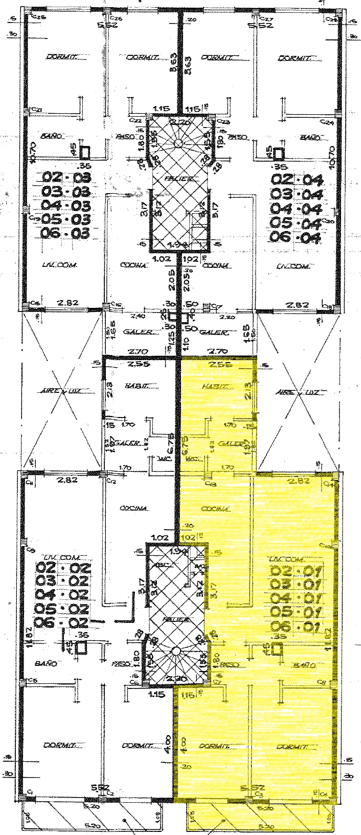 El conjunto del edificio cuenta con dos torres de 10 pisos y dos unidades por piso, con 2 ascensores.