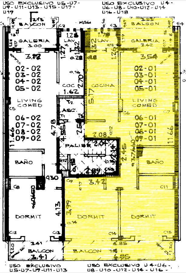 El conjunto es de dos torres de PB+9 pisos, cuentan con hall de ingreso y un ascensor.