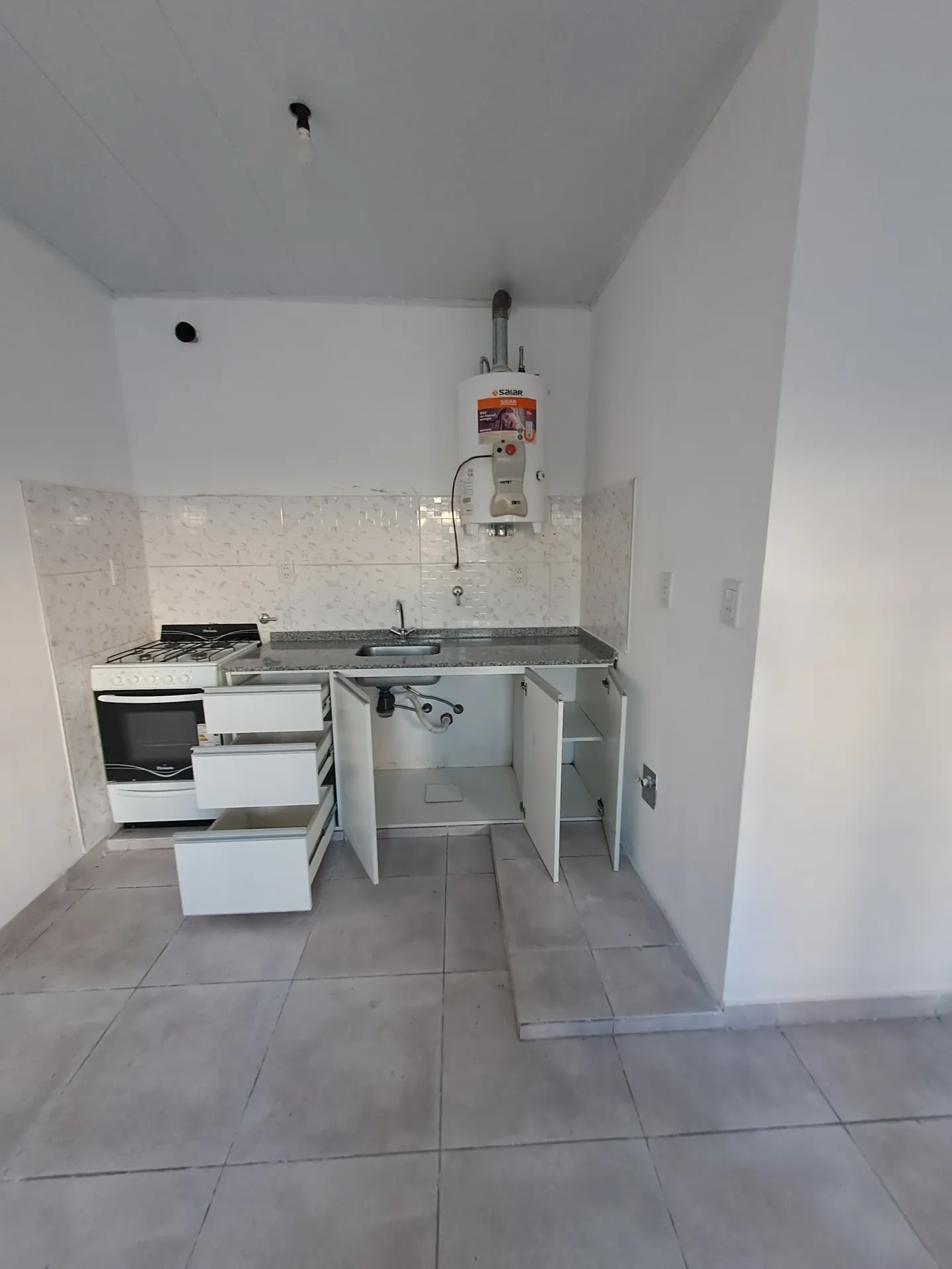Se ingresa por un amplio pasillo compartido. El departamento cuenta con un pequeño patio delantero, cocina comedor y dormitorio.